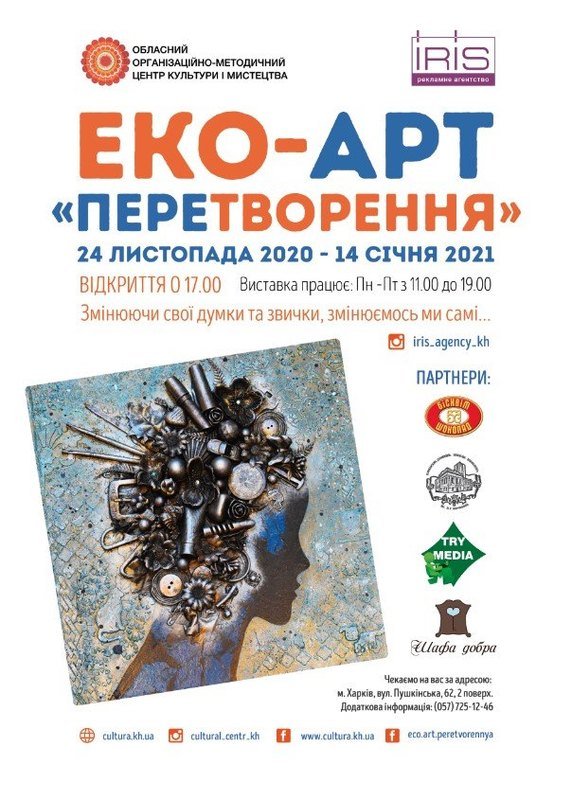 З 24 листопада 2020 року по 14 січня 2021 року КЗ «Обласний організаційно-методичний центр культури і мистецтва» втретє презентує виставку еко-арту «Перетворення».