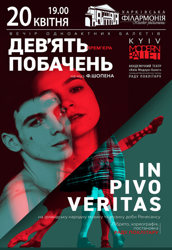 Комедийная представление с ребятами в килтах и девками, что выносливее мужчин, когда речь идет о питье ирландского эля. Но это еще не все! Оказывается, среди артистов «Киев Модерн-балета» есть уникумы, способные двумя половинами тела танцевать по-разному. Одной - модерна хореографию на прочной основе народной. Второй - классику, и даже на пуантах!