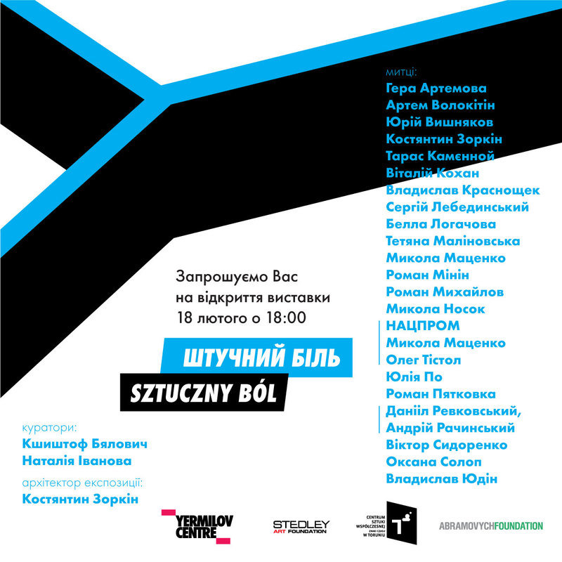 18 лютого 2021 року о 18:00 у Центрі сучасного мистецтва «ЄрміловЦентр» відкриється виставка сучасного українського мистецтва «Штучний біль». Цей проєкт було показано в Польщі в Центрі сучасного мистецтва «Знаки часу» у Торуні з квітня по вересень 2020 року.