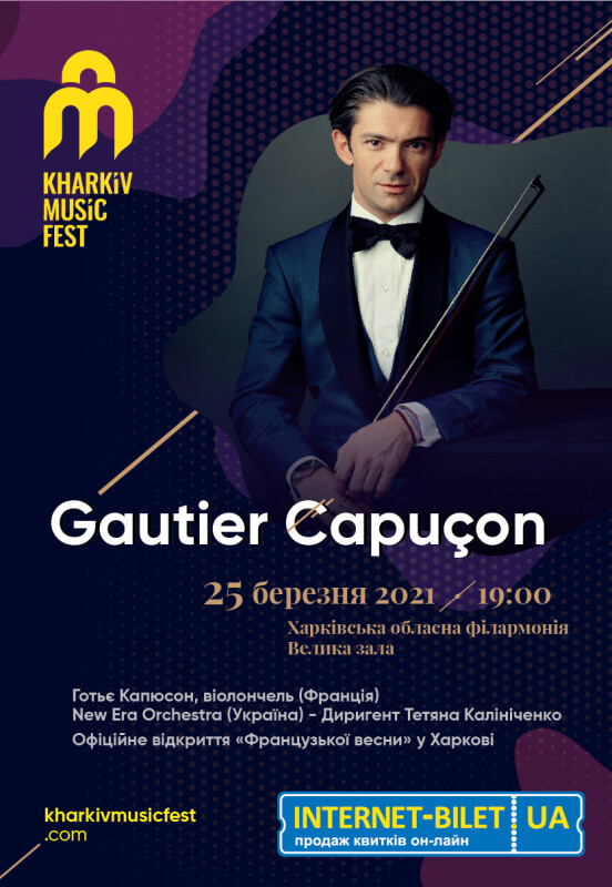 Окунуться в фестивальную атмосферу, узнать о программе всех проектов фестиваля, и послушать звездных исполнителей приглашает KharkivMusicFest 25 марта на Promo concert KharkivMusicFest-2021, который состоится за две недели до начала фестиваля. На сцене Большого зала Харьковской филармонии выступит всемирно известный виолончелист из Франции Готье Капюсон, а также один из самых успешных негосударственных оркестров Украины - New Era Orchestra.