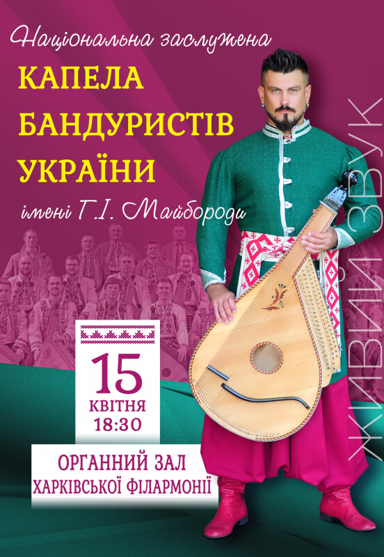 Уникальный художественный коллектив со столетней историей - Национальная заслуженная капелла бандуристов Украины им. Майбороды приезжает в Харьков с новой концертной программой «Песенная Украина»!
