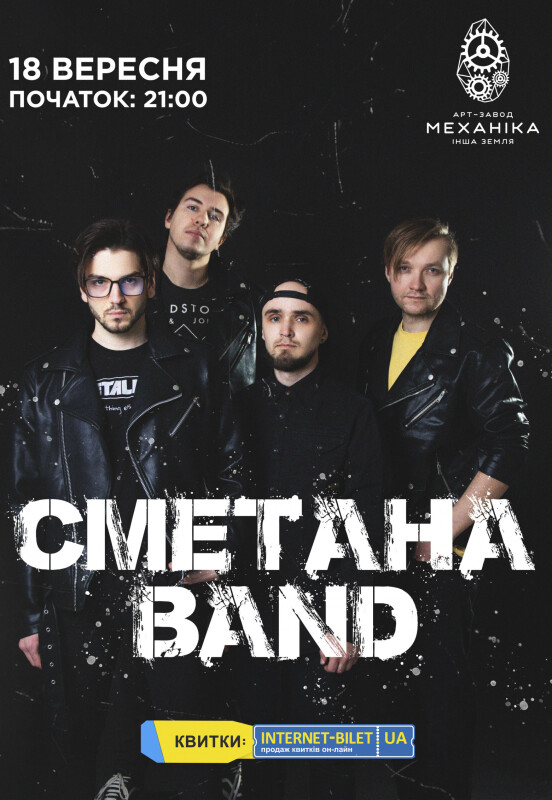 С конца 2017 года группа потихоньку меняет стиль в сторону грустного панка, что только добавляет им популярности и подчеркивает индивидуальность среди кучи безликих коллективов. Концерт СМЕТАНА band это всегда мощно и эмоционально! Новые песни + лучшие хиты, такие как: "Мы не подружимся", "Лучший друг", "Ля-ля", "Не бери трубку", "Конструкторы", "Воха и Лёха", "Пить-Плакать" заставят вас отрываться весь концерт! Всех ждем 18 сентября на «Арт-заводе «Механика»».