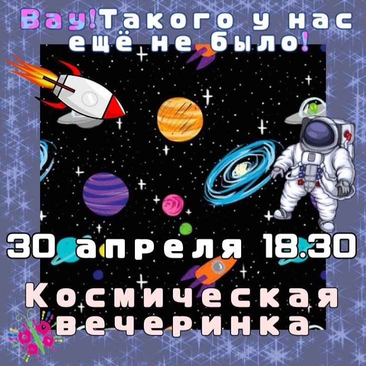 Межгалактические танцы , конкурсы, серебряное шоу- всё это на космической вечеринке у нас 30 апреля!!!