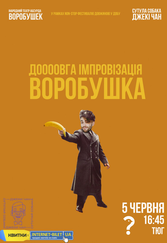Фестиваль абсурда "Сутулая собака Джеки Чан" достигает шестого уровня. Вы счастливы и продлили свою жизнь на несколько лет, если побывали до этого на всех мероприятиях, а есть и такие, кто только подтянулись именно на импровизацию, которая захлестнет волной сюрреализма в Театре детей и юношества в 16:45.