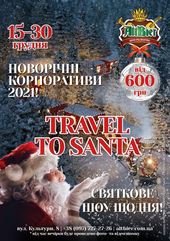 Друзья с 15 декабря в Шоу-ресторане ALTBIER начинается марафон новогодних корпоративов «TRAVEL TO SANTA»! Каждый день, до 30 декабря, наша арт-команда будет дарить праздничное настроение всем, кто устал от работы и хочет праздновать!