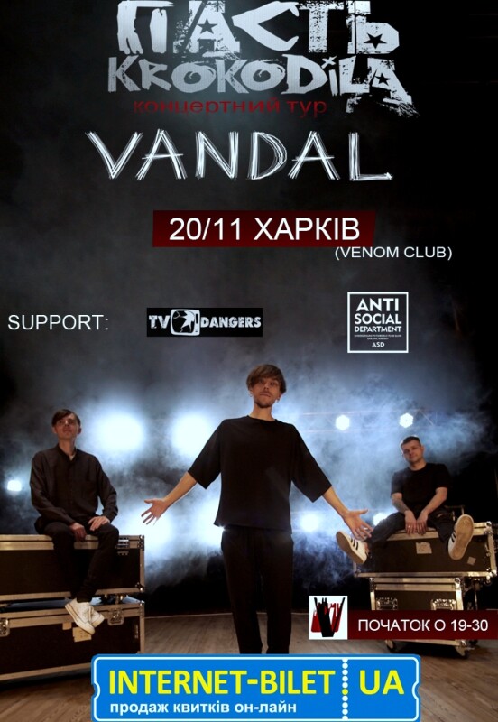 20 ноября группа "Пасть Крокодила" выступит в Харькове (Venom) в рамках тура в поддержку new ЕР "Вандал". На концерте прозвучат как новые треки, так и бронебойные хиты группы, которые уже так полюбились фанатам "Свежина", "Сила Прометея" и т.д. Танцы, слэм, драйвовые эмоции гарантированы!