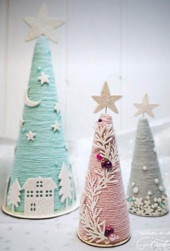- Робота з нитками, які перетворяться на оригінальну ялинку.