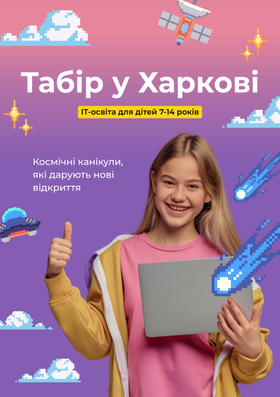 - Для молодих дослідників галактик (10–14 років) - серйозні ІТ-виклики: створення ігор, 3D-моделей та власних проєктів.
