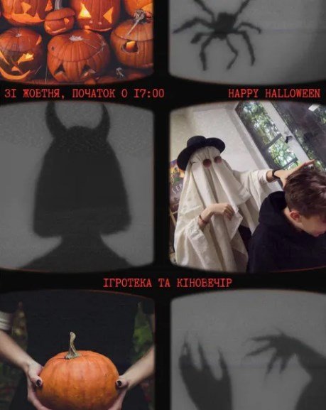 Дресс-код обов'язковий! Приходьте з елементами костюмів чи косплею, плащами, ріжками чи крилами, рукавичками у сіточку й гарбузовими шкарпетками. Підтримайте дух Хелловіну