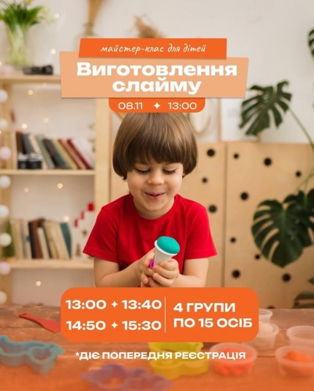 Разом із майстрами кожен учасник обере колір, блискітки та текстуру, а потім забере свій слайм додому.