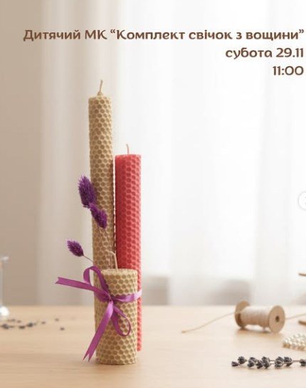 Запрошуємо діток на затишний та творчий майстер-клас, де вони власноруч виготовлять набір свічок із натуральної вощини!
