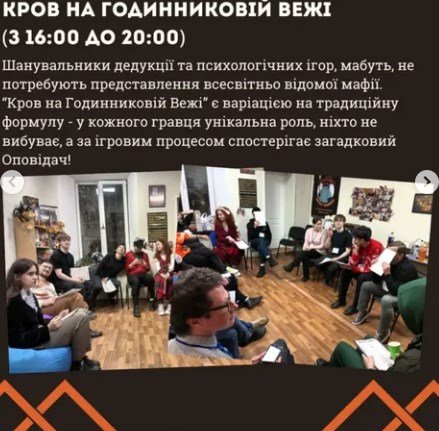 Шанувальники дедукції та психологічних ігор, мабуть, не потребують представлення всесвітньо відомої мафії. "Кров на Годинниковій Вежі" є варіацією на традиційну формулу у кожного гравця унікальна роль, ніхто не вибуває, а за ігровим процесом спостерігає загадковий Оповідач!