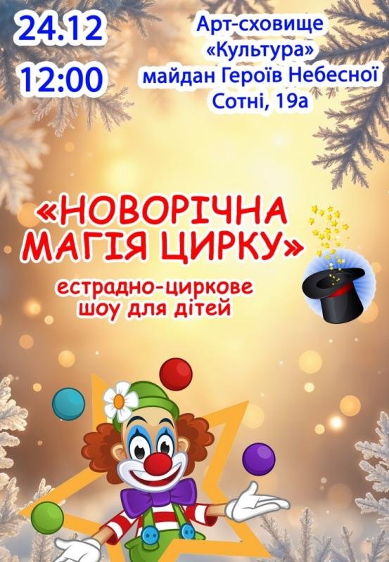 Зустрічайте "Новорічну магію цирку" – естрадно-циркове шоу, де веселі клоуни, магія, фокуси та неймовірні перевтілення оживають на сцені!