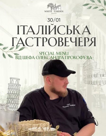 Запрошуємо вас на вишукану гастрономічну подію, де поєднаються темперамент італійської кухні, благородні вина та жива музика, що перенесе вас до сонячної Італії.