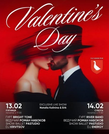 У Fat Goose Pub відбудуться дві особливі вечірки Valentine’s Day — для закоханих
