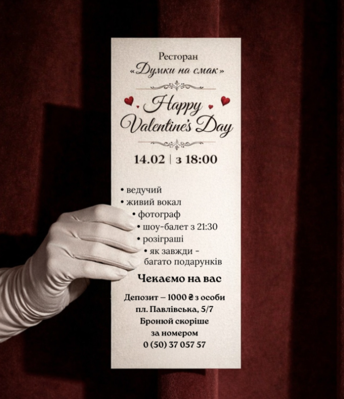 14 лютого у «Думки на смак» — вечір, який хочеться запам’ятати
