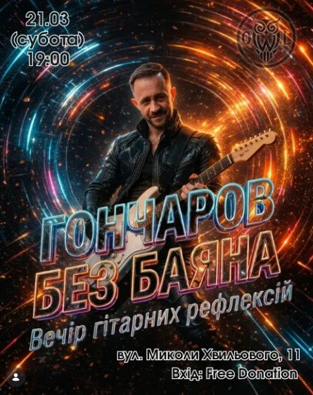 Субота - вечір живої музики у Drinking OWL . Біля мікрофону учасник гурту "Село і люди":