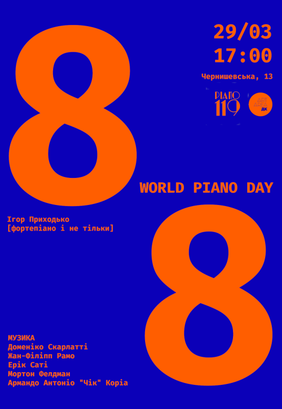 Всемирный день фортепиано, или Piano Day, отмечается на 88-й день года — по количеству клавиш на фортепиано. В этом году он приходится на 29 марта.