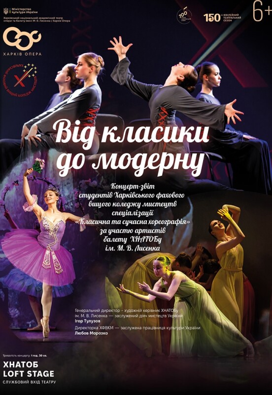 Loft Stage Схід Опера вновь приглашает ценителей танца на необычное событие! Студенты I–IV курсов Харьковского профессионального высшего колледжа искусств по специальности "Классическая и современная хореография" представят концерт-отчет "От классики к модерну".