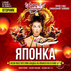24 часа Всем посетителям скидка на Японскую кухню50%