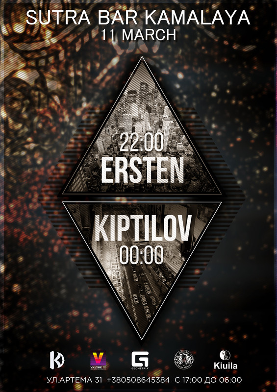 Его стильные компиляции слышны в разных уголках города и нетерпеливо ожидаются поклонниками его творчества. Активный деятель ночной жизни Харькова, он успевает не только удовлетворить самые изощренные вкусы слушателя, но и покорить сердца всех девушек на танцполе. Алексей Киптилов - идейный вдохновитель Perception Collective, ведущий радио-шоу «Perception» на радио MFM (UA) и создатель фирменных вечеринок Perception Showcase.