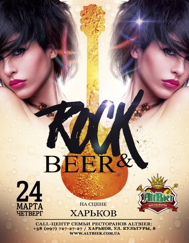 Мы говорим: «Всем пива и рок-н-ролла»! От легко светлого до крепкого темного пива – мы варим для Вас 10 сортов пива! От легкого рок-н-ролла группы «Браво» до тяжелого рока группы Ramstein – мы играем для Вас лучшую музыку. Даже самый придирчивый пивной гурман здесь найдёт «свой» сорт пива и любимую музыку! Пивной разгуляй в шоу-ресторане AltBier назначен на 24 марта. Начало ровно в 20:00. Ждем всех любителей хмельного напитка и рока! Если ты не любишь пиво и рок, ты просто не был в AltBier!