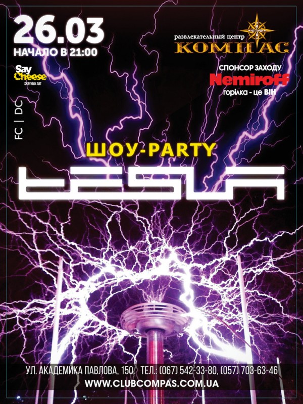 Уютные клубные вечеринки и заряд мощнейшей позитивной энергетики в эту Субботу. В клубе Компас вечеринка Шоу-Party «Tesla». Мощно и громко, энергично и шумно, взрыв энергии ума и тела.