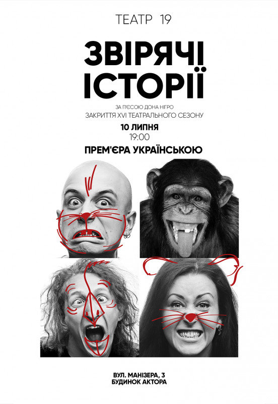 «Зверские истории» - это новый спектакль известного и любимого в Украине «Театра 19» из Харькова: премьера состоялась 7 июня 2016 года.