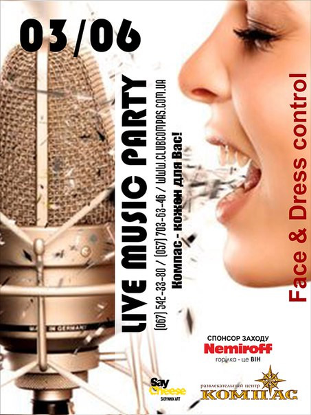 Да Здравствуй лето 2016. Ура! Встречай лето вместе с нами! Под живую музыку. Традиционная вечеринка “Live Music Party” в клубе Компас. Ночь, где сливается вокал и саксофон. Приятная музыка, легкая атмосфера, новые ритмы и зажигательное настроение. Наслаждайся запахом лета уже вместе с нами.