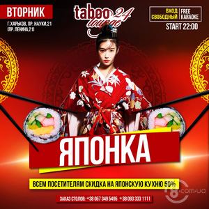 24 часа Всем посетителям скидка на Японскую кухню 50%.
