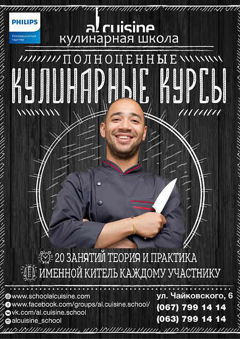 Все блюда готовятся на ваших глазах, с пошаговым объяснением шеф-повара и Вашим непосредственным участием. Команда Al.Cuisine предоставляет методический материал, все продукты и рецепты. Каждому участнику будет пошит именной поварской китель! И самое главное, по окончанию курса проводится выпускной экзамен, и Вы получите сертификат об окончании курсов!