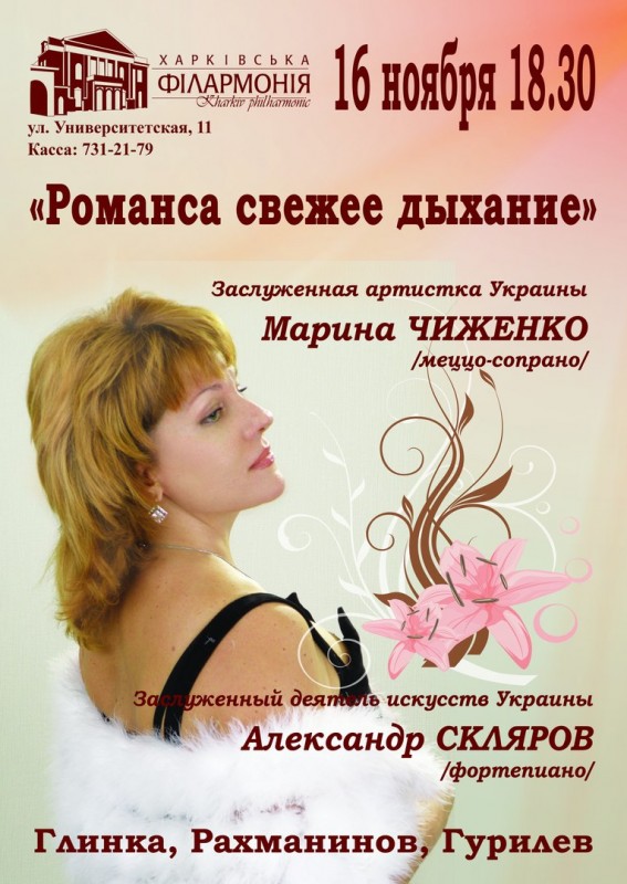 В программе концерта: Глинка, Рахманинов, Гурилев, вокальный цикл на стихи Гарсиа Лорки (музыка Николая Стецюна).