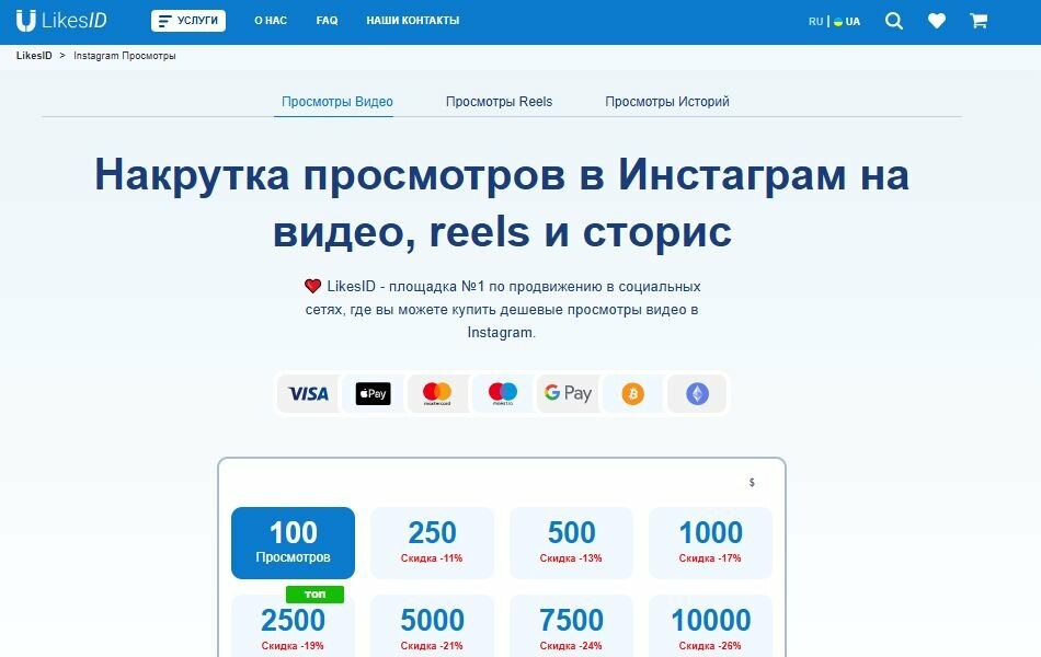 Этот сервис далеко не первый год сосредоточен на продвижении в популярных соцсетях. Здесь действительно много услуг, которые помогут продвинуться комплексно. Есть и накрутка живых просмотров Инстаграм. Именно она, по опыту команды, позволяет быстро увеличить охваты.
