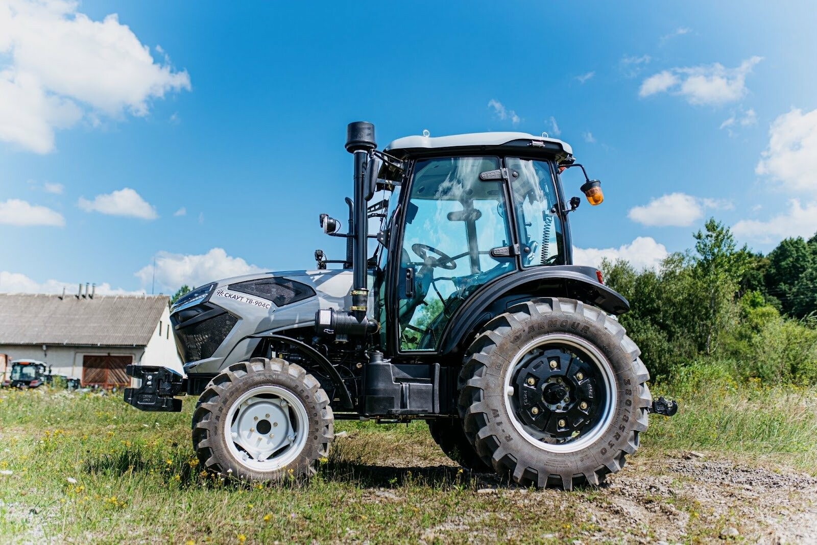 - Удобное управление – современное рулевое управление с функцией гидравлического усилителя руля позволяет без проблем маневрировать, объезжая препятствия, кроме того, некоторые тракторы СКАУТ допускают изменение ширины колесной базы;