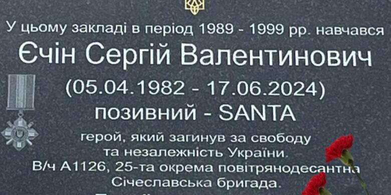 Сьогодні у Слобідському районі на фасаді Комунального закладу «Харківська гімназія №77 Харківської міської ради» відкрили меморіальну дошку на честь воїна Збройних сил України Сергія Єчіна. Сергій Єчін закінчив цю школу у 1999 році. З позивним «SANTA» служив оператором ударних безпілотних авіаційних комплексів 25-ї окремої парашутної десантної бригади, героїчно боронив Батьківщину від загарбника. 17 червня 2024 року в районі Карлівки Покровського району...