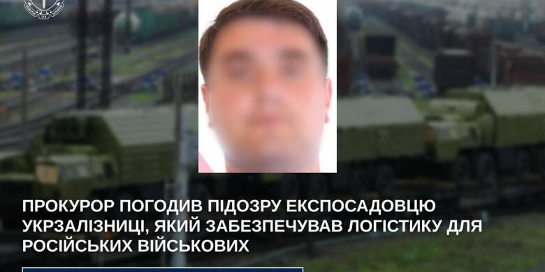 Прокурор погодив підозру експосадовцю Укрзалізниці, який забезпечував логістику для російських військових. Зочно повідомлено про підозру 40-річному чоловіку в пособництві шляхом усунення перешкод у провадженні господарської діяльності у взаємодії з державою-агресором, незаконними органами влади, створеними на тимчасово окупованій території, у тому числі окупаційною адміністрацією держави-агресора, вчиненому за попередньою змовою групою осіб (ч. 5 ст. 27,...