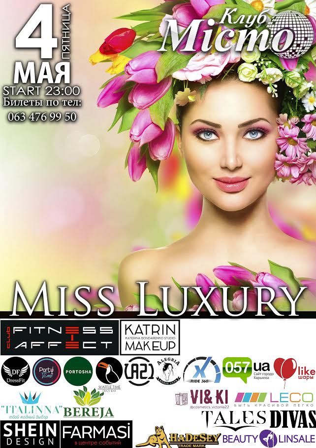Хорошая музыка, отличное настроение, жаркие танцы, интересная шоу программа, красивые девушки и многое другое ждёт Вас 4 мая на конкурсе красоты "Miss Luxury" в клубе Мисто! Не пропустите самую жаркую вечеринку этого мая!
