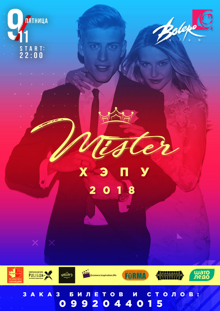 9 ноября в ночном клубе Болеро состоится ежегодный конкурс красоты, мужества и таланта среди студентов Харьковского экономико-правового университета "Мистер ХЭПУ 2018"!