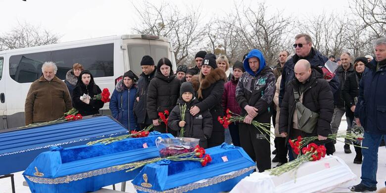Сегодня в Харьковской области похоронили троих детей и их отца, ветерана русско-украинской войны. Их 10 февраля убили в результате российской атаки по Богодухову. Из всей семьи осталась только Ольга Кривогуб, беременная на 35 месяцев. 13 февраля в Сковородиновке простились с Григорием Шикулой и его тремя детьми. Близнецам Ивану и Владыке было по два года, Мирославе – один год. Они погибли вместе с отцом из-за попадания беспилотника в их частный дом. Из сем...